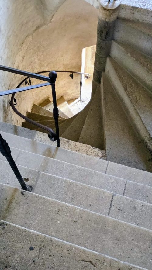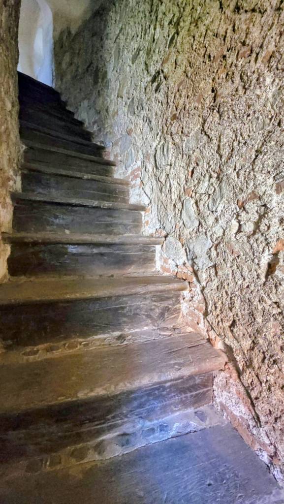 Climbing the towers means spiraling upward through narrow stone staircases where the steps have been worn smooth by centuries of feet. Soldiers once ran up and down these same passages carrying armor and weapons. Messengers likely raced through them with news from distant battlefields. Servants carried everything from water to dishes to candles and chamber pots. They all had calves of steel and thighs of iron.