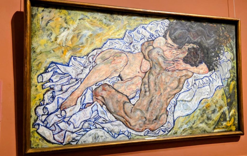 The first gallery of the permanent collection leading to The Kiss opens with Egon Schiele’s The Embrace. I had not encountered this particular art piece before and fell in love immediately. Two figures wound around each together with rawness and urgency, the painting evoking a feeling more than realism. It is this focus on feeling and subjective perception that always makes me fall in love with expressionist artwork.