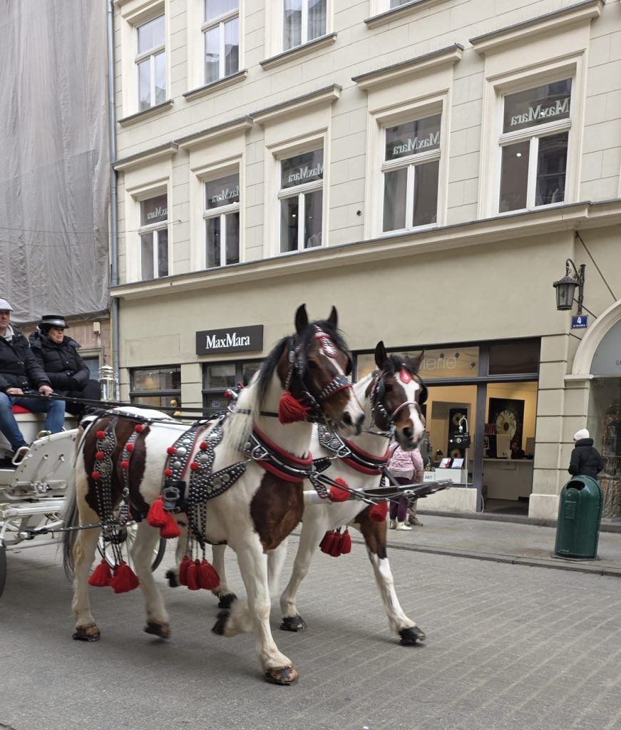 Medieval buildings with beautifully decorated facades lining cobblestone streets that wound through the old town in the unhurried way of cities that predate the idea of a grid. A market square that has been in continuous use since the Middle Ages, still busy, still the center of everything, ringed with cafes and street musicians and horse drawn carriages that clip-clopped past with an air of complete historical indifference to the tourists photographing them.